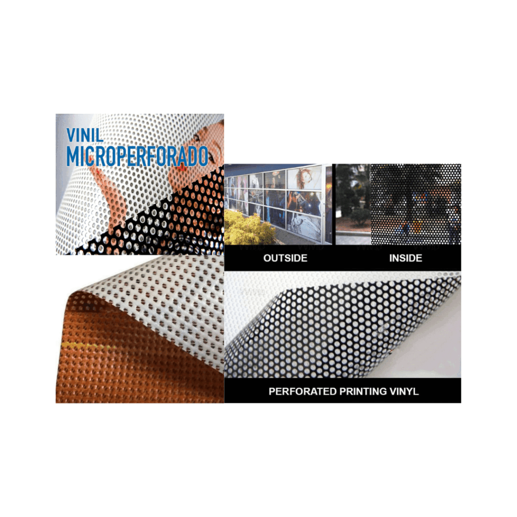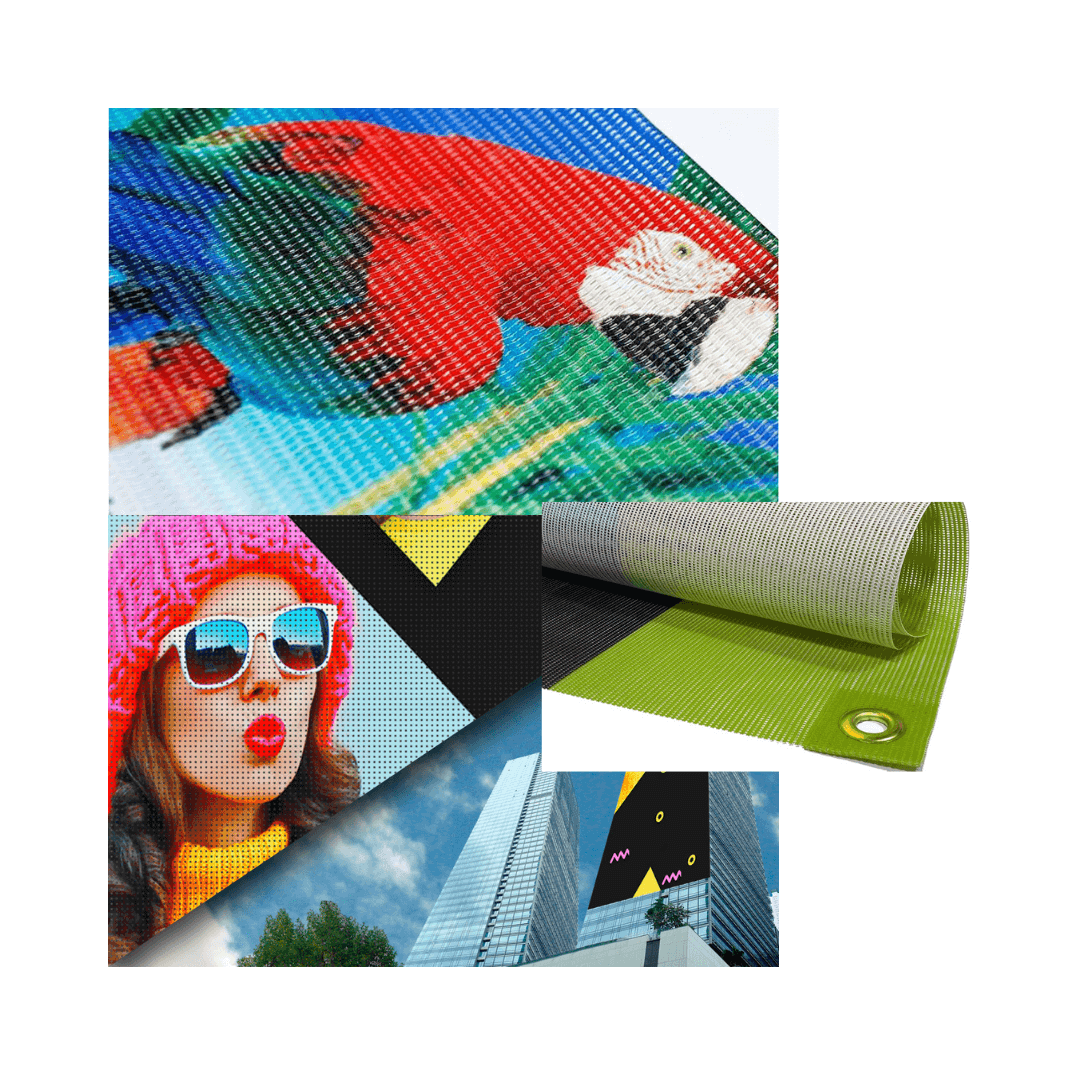 This material allows clear visibility from the inside while displaying vibrant printed graphics on the outside. Ideal for advertising without blocking the view.